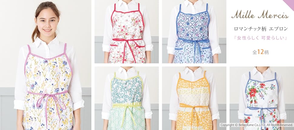 フランス語で「数え切れない程のありがとう」という意味を持つブランド「ミルメルシー」から、感謝の気持ちを込めて女性らしく、可愛らしいエプロンをご提案いたします。