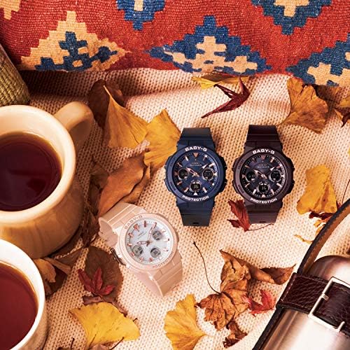 アクティブな女性のためのカジュアルウオッチBABY-Gから、秋冬コーデにマッチするアースカラーのモデルの登場です。ネイビー・ベージュ・ブラウンのアースカラー×ピンクゴールドの組み合わせが、秋冬ファッションと相性が良く女性らしいカラーリング。アースカラーに、華やかなピンクゴールドが明るさを加えます。更にインデックスは立体デザインで、腕を傾けた瞬間に煌く楽しさが。機能面では、世界6局の電波を受信し時刻を自動修正するマルチバンド6、ワールドタイム、タフソーラー等、頼れる機能を備えています。手元に大人っぽく華を添える、BABY-Gの登場です。