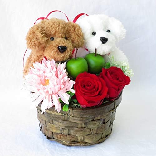 画像はこれまでお届けした商品の一部です。バラや造花、器は予告なしに変更される場合があります。トイプードルと人気のプリザーブドフラワーのバラと造花のアレンジメント。薔薇は高級なプリザーブドフラワー。普通の生花なら数日で枯れてしまいますがプリザーブドフラワーは人体に無害なオーガニック色素をお花に吸い上げさせて加工し、みずみずしい姿を数年にわたり変わらない状態を保ってくれるお花です。※写真はイメージです。手作りの為一部、お花の形状や色が違う場合があります。