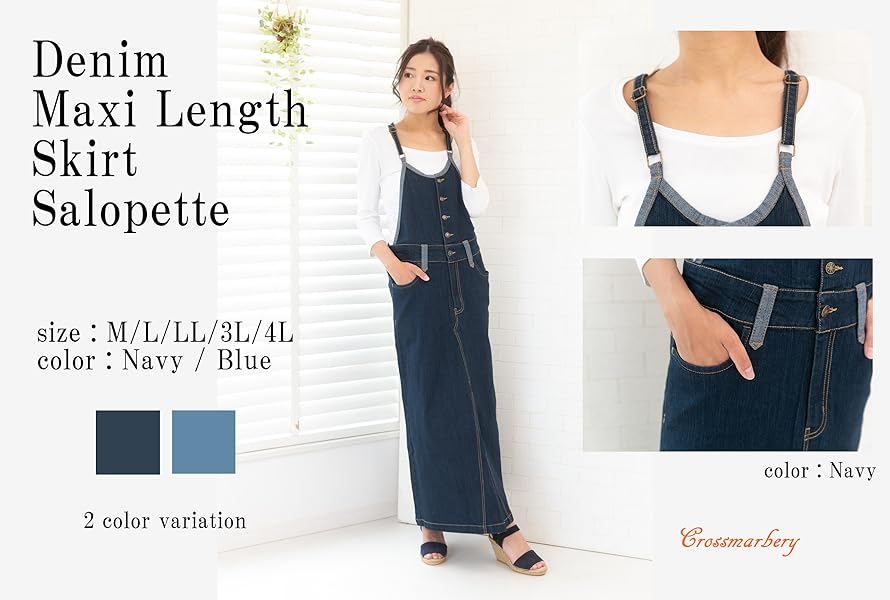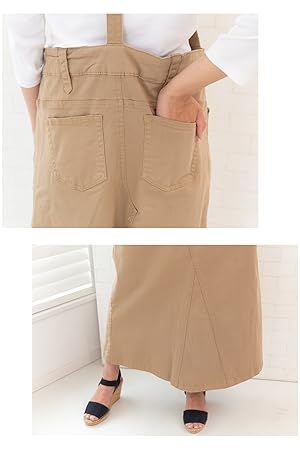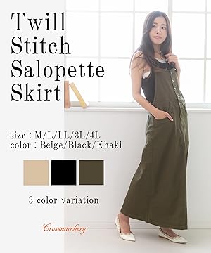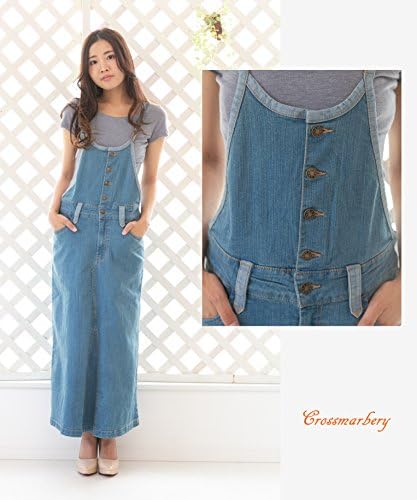 [クロスマーベリー] サロペット ロング スカート オーバーオール デニム ツイル マキシ丈 カジュアル 綿 M~4L レディース