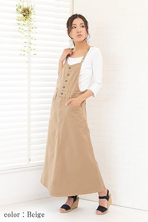 カジュアルでも大人顔に着れちゃうサロペットスカート。タイト過ぎないゆったりとしたAラインのロングスカートデザインはきれいなシルエットを演出してくれます。フロントボタンがポイント。大人っぽく見せてくれる細めの肩ひもは調整可なのでスニーカーでもヒールでもお好みの長さで着れるのも◎