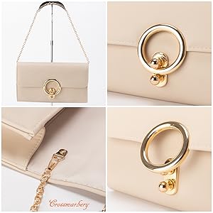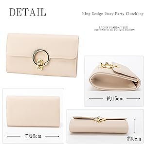 [クロスマーベリー] リングデザイン パーティーバッグ クラッチバッグ チェーンストラップ エレガント 3WAY レディース