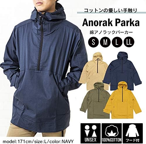 コットンのやさしい手触り綿アノラックパーカー。