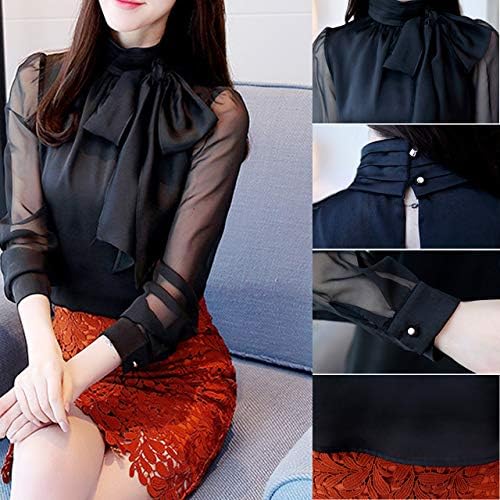 袖の透け感がステキなボウタイのブラウスです。普段使いやオフィス、フォーマルにも使える上品なトップスです。