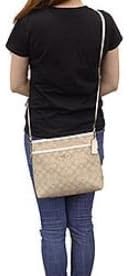 【型番/名称】F29210 / SIG ZIP FILE XBODY【カラー】ライトカーキ×チョーク IMDQC / 金具の色:ライトゴールド【サイズ】横幅:26cm 高さ:23cm マチ:23cm ショルダー:108cm~122cm 重さ:390g【仕様】間口:ファスナー開閉 正面:オープンポケット×1 ショルダー:長さ調節可能 ●コーチの長財布が入ります【素材】PVCコーティングキャンバス×レザー【付属品】なし※モデル身長:159cm