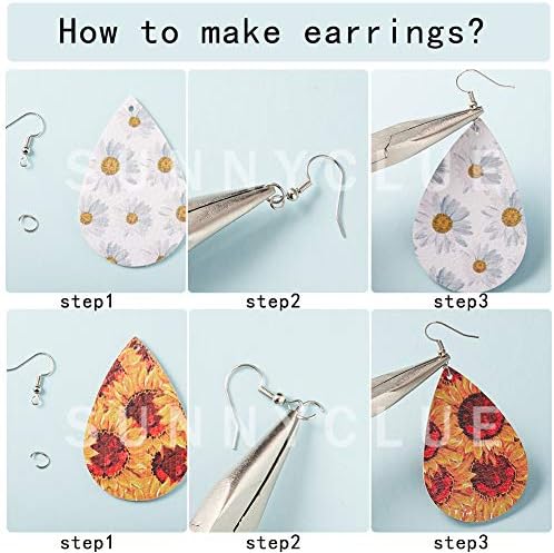 サニークルーDIYメイク10ペアひまわりプリントレザー軽量ティアドロップブラブラ花イヤリング作りスターターキットジュエリー作り用品女性女の子初心者, プラチナ