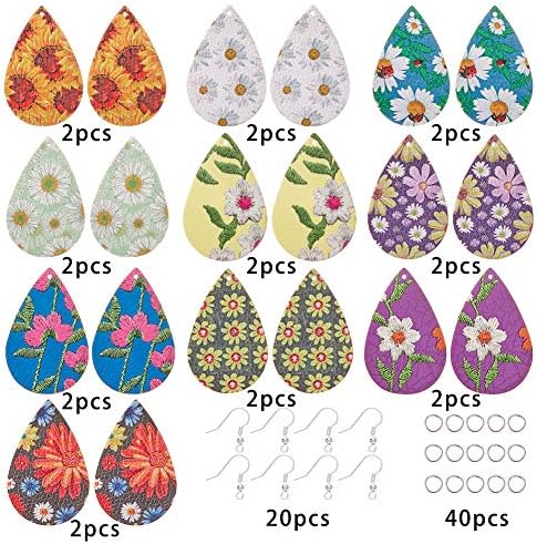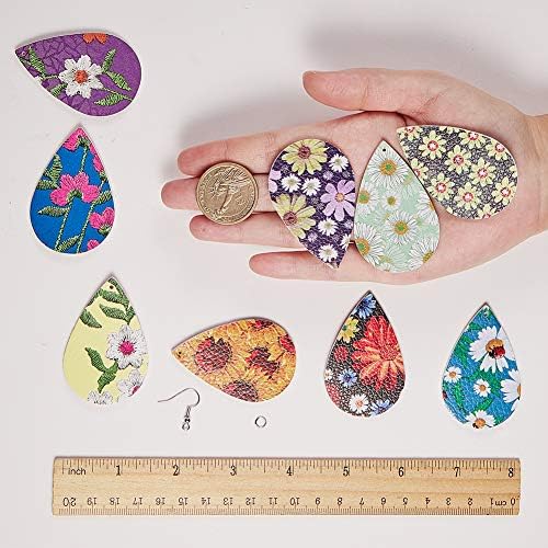 ❤DIYMAKE 10ペアフラワーレザーイヤリング:この高級ジュエリーメイキングキットには、10組のフラワーレザーティアドロップダングルイヤリング(LW)を作成するために必要なものがすべて含まれています:55mmx35mm(2.32″x1.38″).