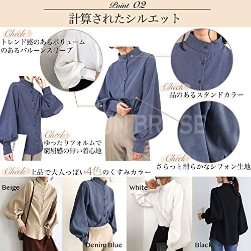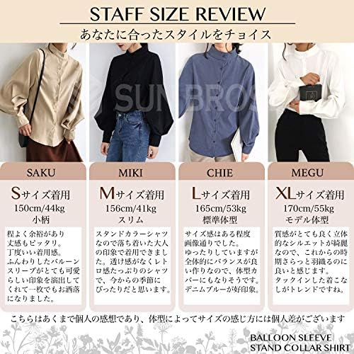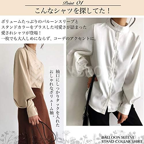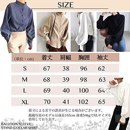 【Detail】ボリュームたっぷりなバルーンスリーブが印象的なスタンドカラーシャツ。袖口には大きめのタックをプラスし、ウエスト周りはボディラインを拾わないゆったりとした計算されたシルエット。メリハリを持たせデザインで着痩せ効果のあるレディーストップスです。