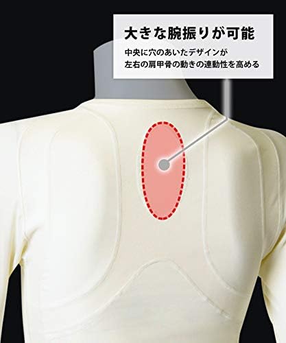 肩甲骨まわりのラインが左右の肩甲骨をバランスよく支えて、可動域を広げます。また、中央に穴のあいたデザインが、左右の肩甲骨の動きの連動性を向上し、肩甲骨を使ったしっかりと大きな腕振りが可能に。