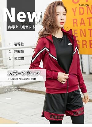 【5点セット内容】: 半袖、短パンツ、長パンツ、パーカー、スポーツブラ 5点セット