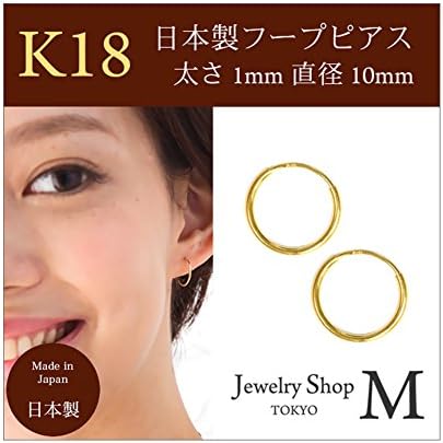 サイズ: 太さ1.0mm 直径10mm個数:両耳分(2個1ペア)地金加工:K18(イエローゴールド)
