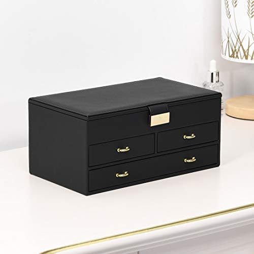 “ジュエリーボックス アクセサリーケース ジュエリー収納 大容量 鏡 付き小物入れ トレイ付き 宝石箱 PUレザー (ブラック)” の口コミを投稿します