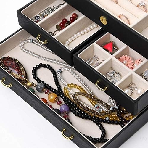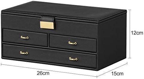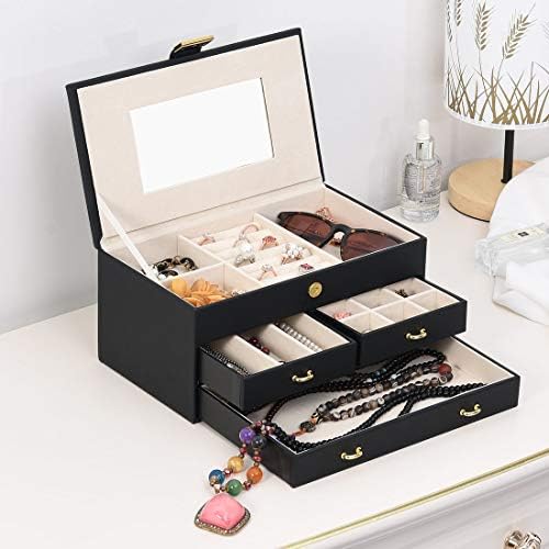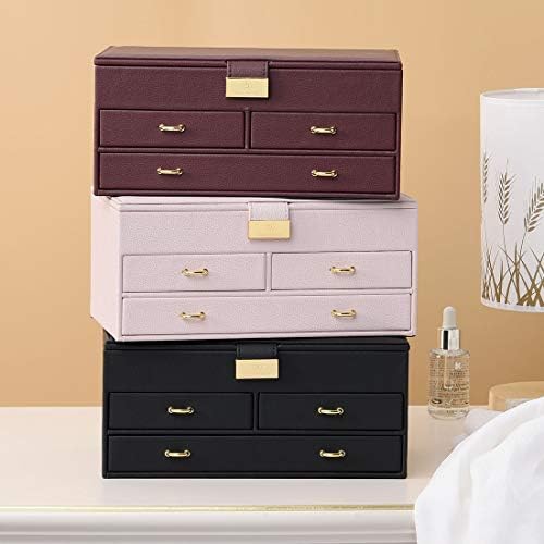 【引き出し3つ】:化粧鏡付きのこのジュエリーボックスには、ネックレス、ブレスレット、リング、イヤリング、時計などを収納できるさまざまなサイズのコンパートメントがあります。 選べる人気のブラック、ピンク、ブラウンの3色。