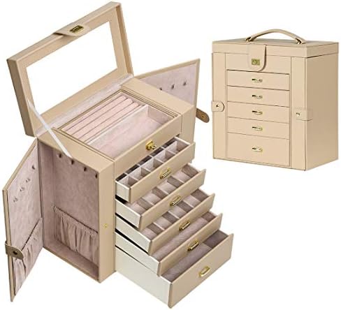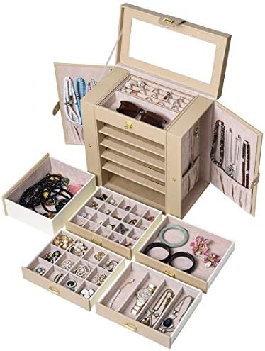 【大容量】この大きなジュエリーボックスは、何重にも重なった完璧な構造です。 大きなジュエリーオーガナイザーのデザインは、リング、イヤリングスタッド、ネックレス、ブレスレット、カフリンクス、ブローチ、時計のメガネなどの収納に役立ちます。