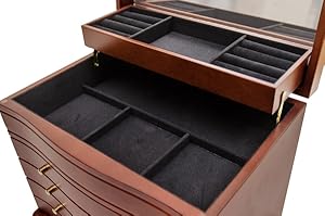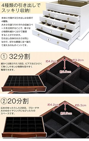 指輪やイヤリング、ネックレスなど種類や大きさに合わせて細かく仕分けできるジュエリーボックス。