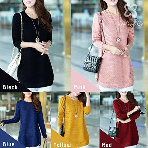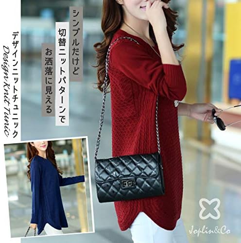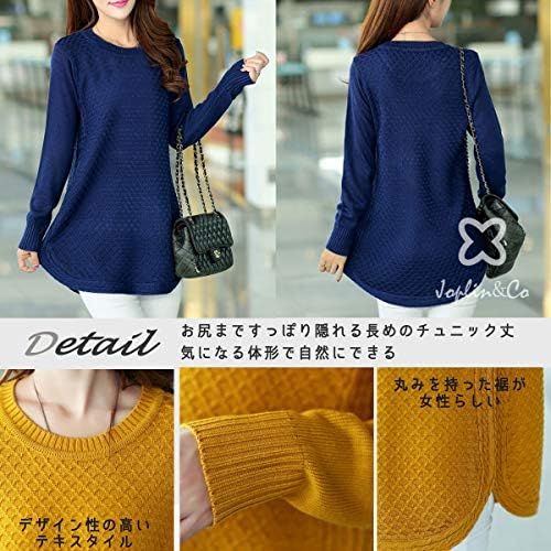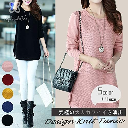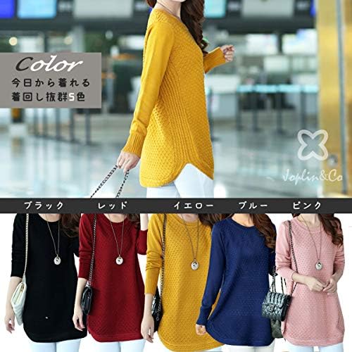 [ジョプリンアンドコー] 5カラー 模様編みニット チュニック Uネック シンプル カジュアル 秋冬 レディース