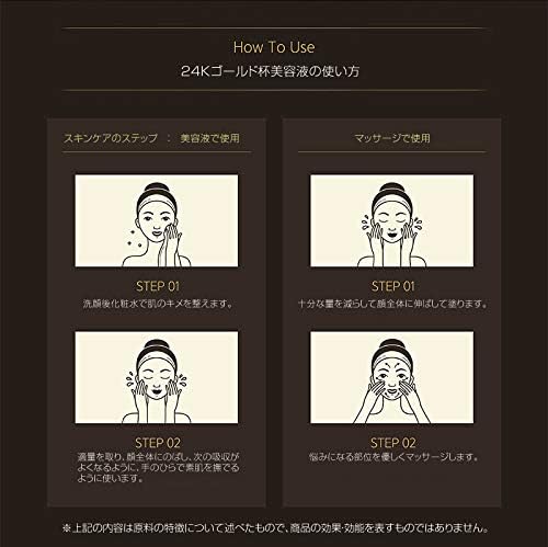 透明なジェルに金箔の浮かぶ美容液です。さらっとした美容液と金箔をそのまま塗り伸ばすと綺麗にお肌になじみます。気持ちのよい潤いを与える、豪華な気分になれる美容液です。