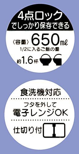 素材・材質:フタ・本体・止具・仕切=ポリプロピレン パッキン=シリコン樹脂生産国:日本容量:650ml