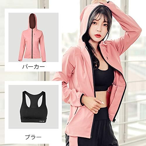 4点セット内容:スポーツブラジャー&Tシャツ&スポーツパーカー&ロングパンツ