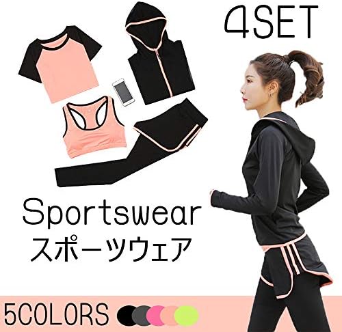 ★4点セット ヨガ用ウェア:スポーツパーカー、スポーツブラ、Tシャツ、パンツ。レディース ヨガウェア