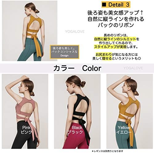 [可愛いデザイン]スポーツブラは胸が揺れないようにするだけでなく、 やっぱり、おしゃれでかわいいデザインが好まれます。 このブラトップは、背中あき&長めのリボンで、後ろ姿まで美しく、 お洒落好きな方におすすめです。 可愛くフェミニンなスポブラで、ヨガやトレーニングがより一層、楽しく、モチベーションを上げてくれます♪