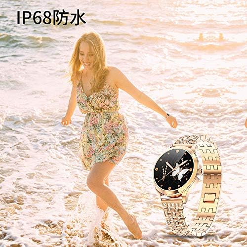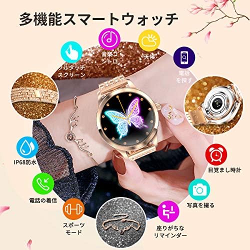 多機能スマートウォッチ レディース:フルタッチカラースクリーンデザイン、ステンレススチールハウジング、宝石をはめ込んだ特別なストラップを組み合わせて、現代の女性に適したスタイリッシュでシンプルなスタイルを特徴とし、ユニークな個人的な魅力を生み出します。多機能:電話着信、メッセージ通知、IP68防水、カスタマイズするダイヤル、音楽コントロール、マルチスポーツモード、スマートフォン検索、目覚まし時計、座りがちなリマインダー、リモート写真撮影、手首を上げて画面を点灯させる機能など。さらに、この女性のスマートウォッチには、ギフトとしてゴールドのブレスレットが装備されており、使用するとより美しくなります。 (ブレスレットにはあなたの発見を待っている小さな秘密がありますよ)
