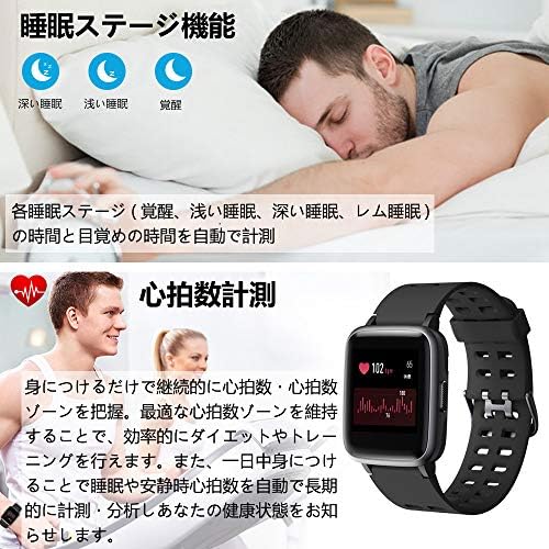 スマートウォッチ 腕時計 Yamay 最新 万歩計 心拍計 活動量計 ストップウォッチ IP68防水 最長連続7日間使用可能 画面の明るさ調節 着信電話/Line/Twitter/SMS/アプリ通知 座り立ち注意 日本語アプリ iphone&Android対応