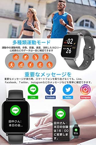 【優れるデザイン】本スマートウオッチのストラップはシリコーン素材で作られており、環境に優しく無毒で、優れた伸縮性、滑らかなタッチ、快適な着用感、1.4インチHDフルカラー画面、明確なフォント、読みやすいです。外観は角のない四角で高級感があり、父の日、母の日、誕生日などのプレゼントにも最適です!日本語のマニュアルも付いているので、すぐに始められます。