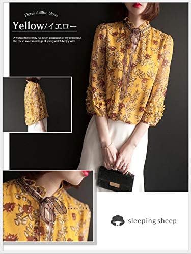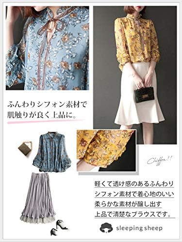 “[スリーピングシープ] 襟リボン と 袖のフリルが可愛い 裏ラメ入り 小花柄 ふんわり シフォン ブラウス 7分袖 フラワープリント” の口コミを投稿します