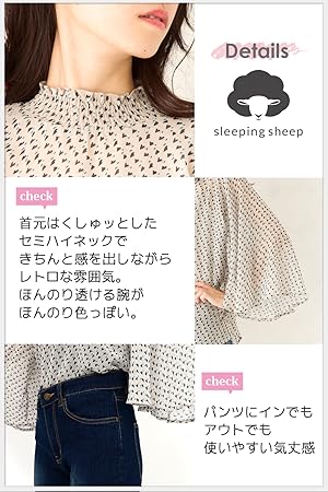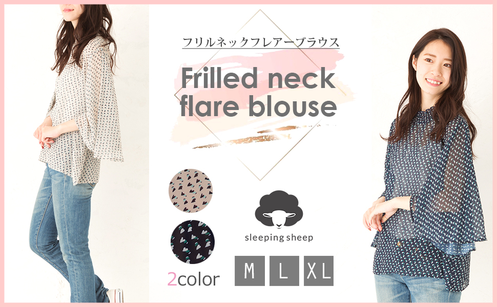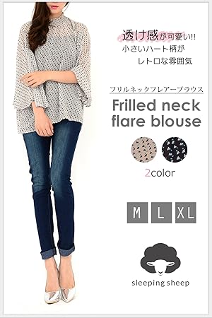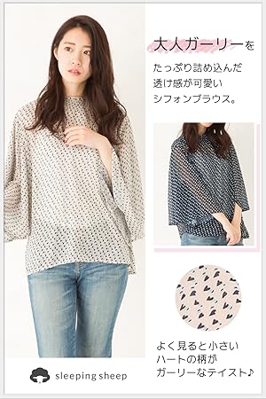 可愛いハート柄のプリントを施したシフォン素材の、ほのかな透け感が上品なフレアスリーブブラウスになります。