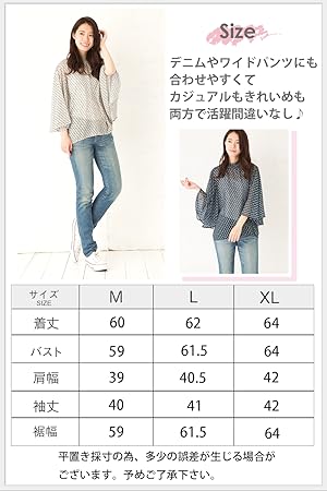 M:肩幅39 バスト幅59 着丈60 裾幅59袖丈40 L:肩幅40.5 バスト幅61.5 着丈62 裾幅61.5 袖丈41 XL:肩幅42 バスト幅64 着丈64 裾幅64袖丈42