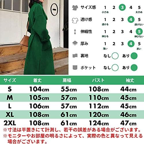 サイズ:着丈/肩幅/バスト/袖丈(cm)【S】104/55/108/44【M】105/57/110/45【L】106/57/112/45【XL】108/61/120/46【2XL】108/61/124/47