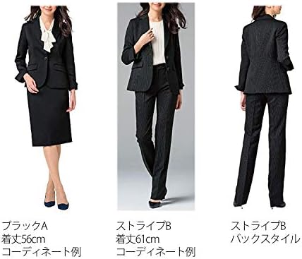 ヒップまである長め丈ジャケットは、気になる部分をカバーしてくれるので安心。ベーシック丈のジャケットは、ワンボタンで着こなしやすい。伸縮性のあるストレッチ素材。落ち着きのあるブラック無地と、シャープな印象のストライプをご用意。洗った後はアイロンを軽くかけるだけできれいな仕上がりに。クリーニング代も節約できます。