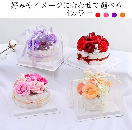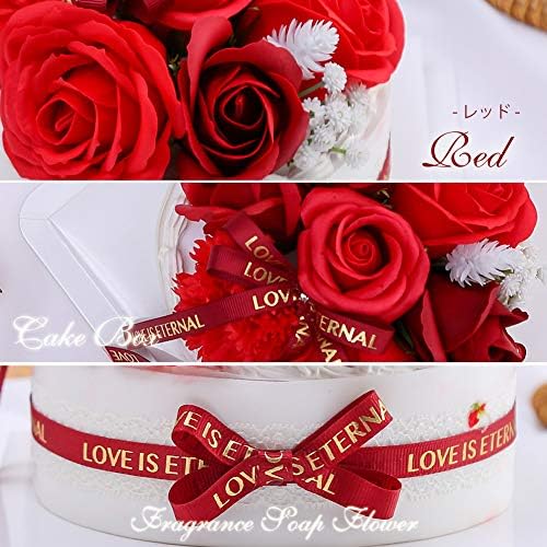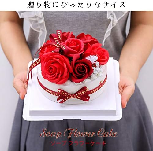 ソープフラワーケーキ 誕生日 プレゼント 女性 女友達 妻 花 母の日 結婚祝い 出産祝い カーネーション フラワーギフト お祝い 退職祝い 送別会 お花 発表会 シャボンフラワー スイーツケーキ box メッセージカード付き バラ(ローズレッド)