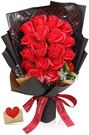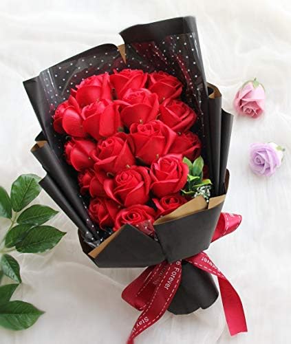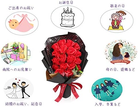 ソープフラワー お花ギフト 誕生日 プレゼント 女性 花束 Rorsweet 結婚祝い 花 母の日 敬老の日 還暦祝い 開店祝い 枯れない花 造花 お見舞い 記念日 (レッド)