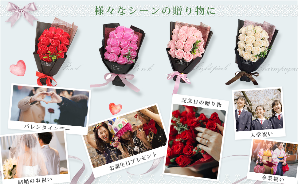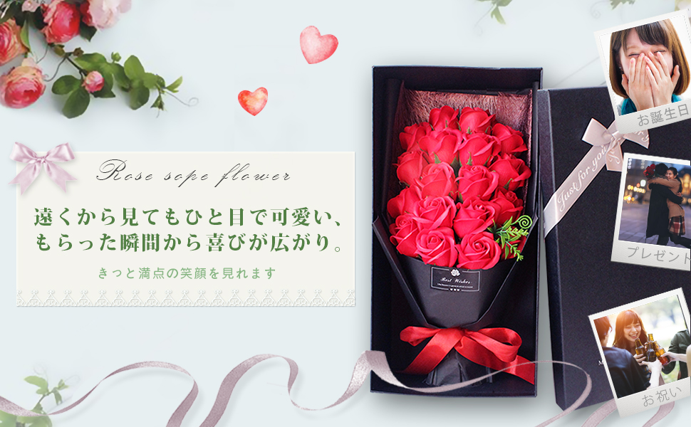 【サイズ】ギフトボックス:38cm*20cm*14cm 丁度良いサイズのボックスソープフラワーであり、メッセージカードも付き、心からの感謝、愛を大切な方へ書きましょう。