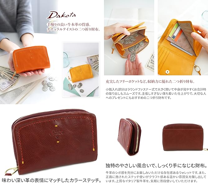 充実したフリーポケットなど、収納力に優れています。落ち着いた仕上がりで、大切な人へのプレゼントにもおすすめの二つ折り財布です。