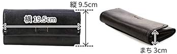 外寸 縦9.5cm×横19.5cm×まち3cm ・重さ 180g ・お札入れ 2ヶ所 ・小銭入れ 1ヶ所(L字ファスナー式)