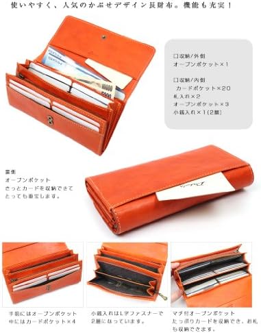 お札入れ:2ヶ所 ・小銭入れ:1ヶ所(L字ファスナー式) ・カード入れ:20ヶ所