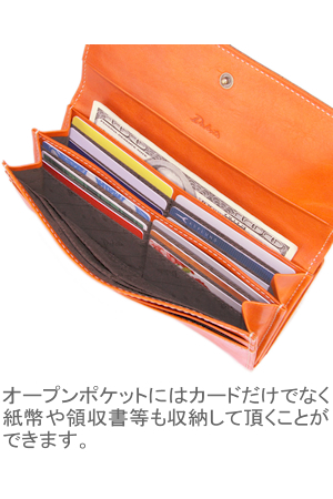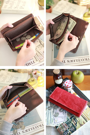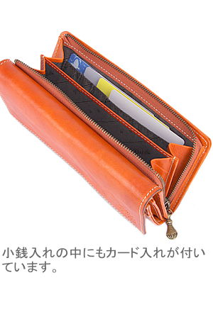 お札入れ:2ヶ所 ・小銭入れ:1ヶ所(L字ファスナー式) ・カード入れ:24ヶ所