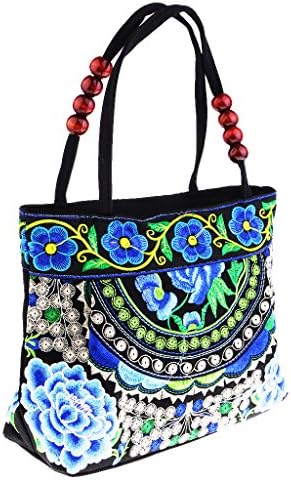 ユニークでレトロな木製のビーズの装飾で、両面は完全に刺繍されています手作り花の刺繍ボヘミアハンドバッグは、毎日の使用に最適ですあなたの貴重品のためのセンターの開口部とジッパーの近くにすべての安全を保つコンパートメントを備えていますあなたの母、妻、女の子の友人、そしてあなたの最愛の人への大きな贈り物