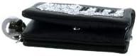ガーリーでセクシー、大人の為のファンタジーあふれるハッピーテイストを提案し続けている【tsumori chisato/ツモリチサト】。キラキラのラインストーンでネコを象ったアイテムが揃う【キラネコ】シリーズ♪ 大小のラインストーンで表現したキラキラネコがインパクトたっぷりの二つ折り財布です。つぶらな瞳のしましまネコモチーフ。手のひらサイズのコンパクトなお財布なのに、お札にカード、一通りのアイテムをしっかり収納してくれます。小銭入れはファスナー式で外側についているので出し入れ楽々♪ネコの形のまんまるでキュートな鈴のチャームもアクセント。 商品の概要: 【メイン開閉】ホック外側/ファスナー小銭入れ×1内側/札入れ×1カードポケット×8フリーポケット×4