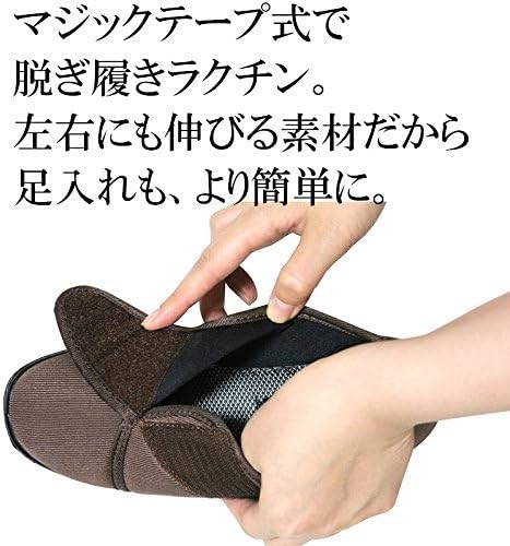 大きく開く、履き口で、足入れスムーズに。 つま先を反り上げて、つまずきにくく。