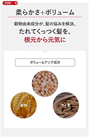 ✅【 柔らかさ+ボリューム 】豆やライ麦などの穀物由来成分が、髪の悩みを解決!たれてくっつく髪を、根元から元気に!