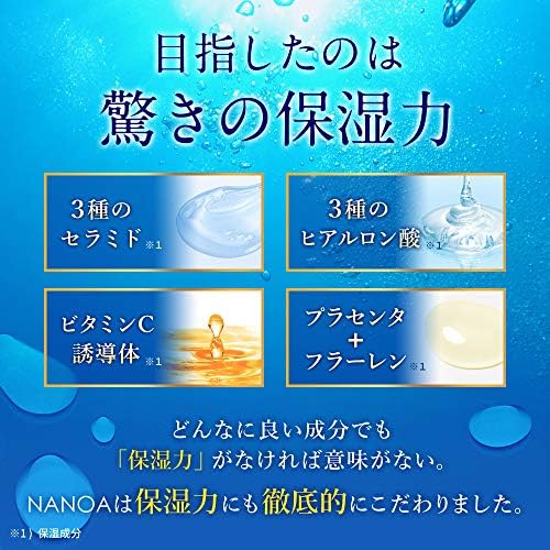 ✅3種のセラミド、スーパーヒアルロン酸、ビタミンC誘導体、プラセンタを配合し、NANOAは圧倒的保湿力にこだわりました。