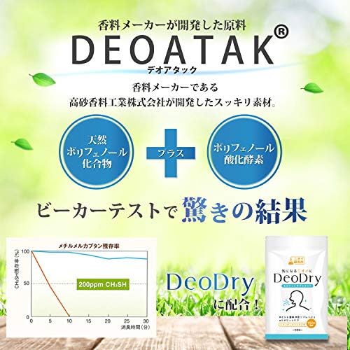 日本を代表する香料メーカーである高砂香料工業株式会社が開発したスッキリ素材DEOATAKを配合!天然ポリフェノール化合物にポリフェノール酸化酵素を加えることで驚きの結果を実現しました