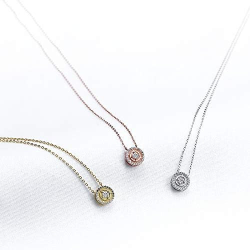 ネックレス レディース シンプル CZダイヤ ペンダント 一粒 シルバー925 人気 ファッション アクセサリー 誕生日 プレゼント 女性 ジュエリー (K18ピンクゴールド仕上げ)