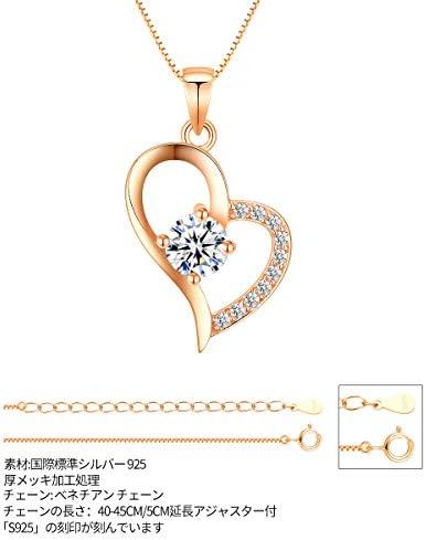 💎【金属アレルギー対応】国際標準シルバー 925純銀製ネックレス、ピンクゴールド 仕上げ 、スワロフスキー ジルコニア を採用、本物のダイヤモンドのような輝きを持ちます。本物の純銀製なので、金属アレルギーの原因物質を一切含まず、体に優しくてアレルギー反応の心配もありません。