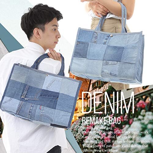 様々なデニムを使ってパッチワークした、クールなデザインのトートバッグ!日々使い込むほどに風合いが増していきます。