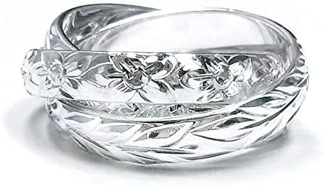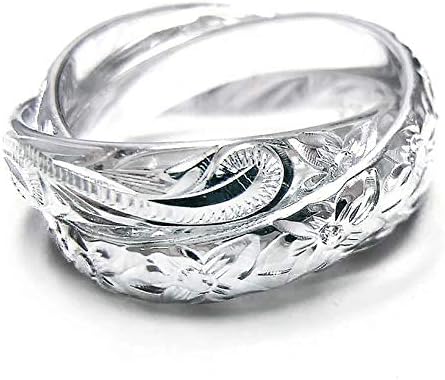 ■商品情報:こちらは3連リングになります。 1本づつデザインが異なるタイプで、波とプルメリア柄、マイレとプルメリア柄、プルメリア柄の3タイプになります。 ボリュームもあり、付ける角度によって見える柄が異なりますので毎日楽しめますね。